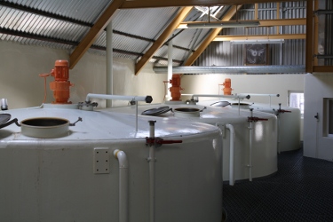 Spirit Safe (hier erfolgt die Trennung in Vor-, Haupt- und Nachlauf), der Tank rechts ist der Spirit Receiver für Newmake.