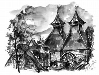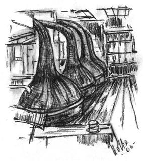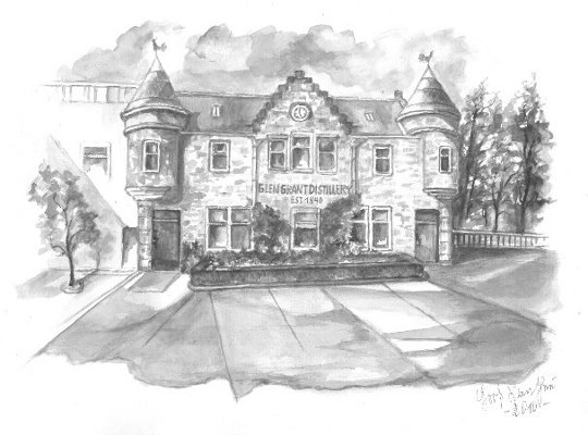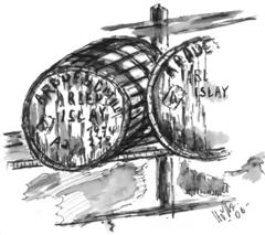 Hotte hat selbst nie Schottland besucht, er malt alle Motive von Bildern - wie wir meinen - mit außerordentlich gutem Ergebnis. Er hat auch das unten stehende Aquarell in DinA3 mit Tasting-Glas und Bowmore Fass entworfen. Bei Interesse am Kauf des Originals oder eines Druckes sprechen Sie uns einfach an!