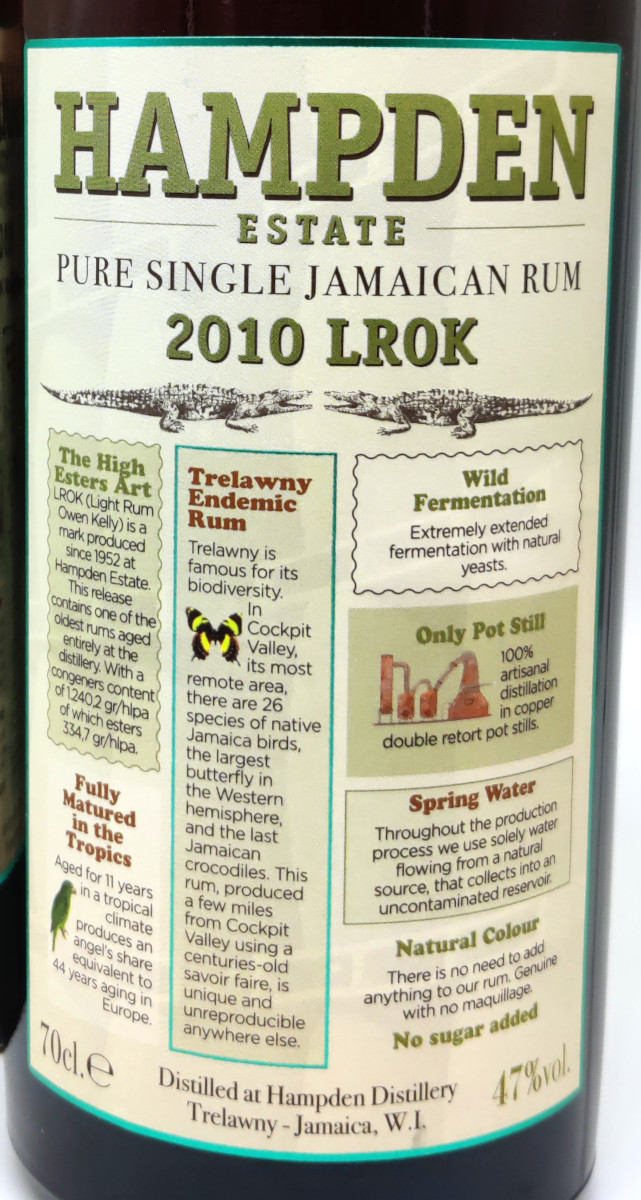 BeschreibungLROK = Light Rum Owen Kelly with a congeners content of 1240,2 gr/hlpa of which esters 334,7 gr/hlpa