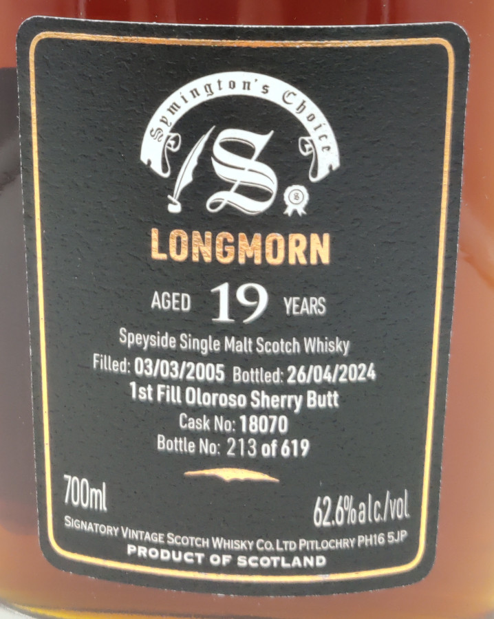 BeschreibungSymington's Choice, distilled: 03.03.2005, bottled: 26.04.2024