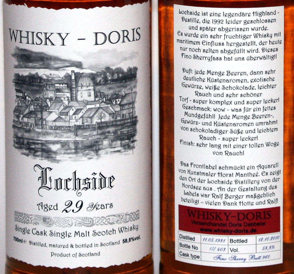 | Lochisde 29 Jahre Whisky-Doris Fino Sherry Butt No. 960 | ||