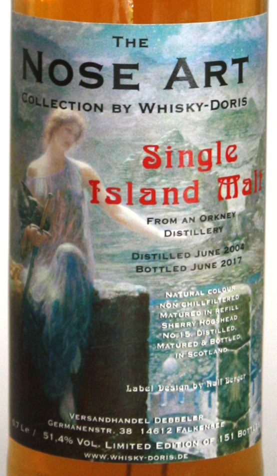werden darf. An der Nase zeigt dieser leckere Orkney Single Malt jede Menge Kräuter und Gewürze mit maritimen Rauch, danach kommen dezente Süße und Fruchtnoten - lecker, spannend und vielschichtig! Im Mund erfolgt ein eleganter Antritt mit cremiger Süße und reifen Früchten, danach kommen immer intensiver die Kraut- und Gewürznoten, gefolgt von Salz und dezentem Rauch. Das Wechselspiel der Aromen im Mund ist beeindruckend von cremig bis maritim-rauchig - ein extrem leckeres und klassisches Aromenprofil! Das Finish ist sehr lang und wärmend, der Ausklang erfolgt wunderbar weich und wohlig - wow, was für ein Orkney Single Malt! Dieser leckere Orkney Malt ist bereits ausverkauft. Das Label ist created by Ralf Berger und zeigt als Motiv die "Nachwache der Walküre" von Robert Hughes.